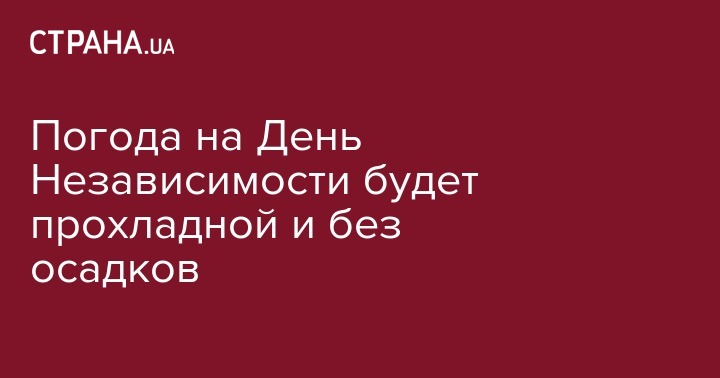 В четверг, 24 августа, в День Независимости синоптики обещают украинцам прохладную погоду, но без осадков. Максимальная температура воздуха достигнет отметки +27 градусов. Об этом сообщает Укргидрометцентр