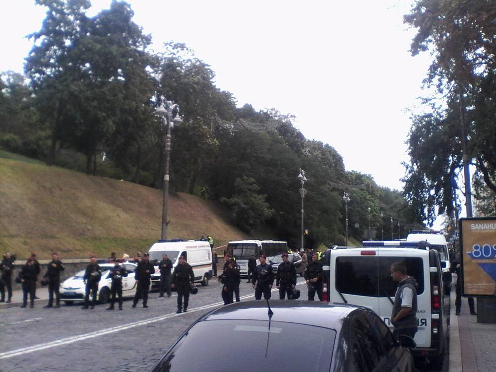 Перекрыта также улица вверху, ведущая к стадиону им. Лобановского. Оперативники проводят следственные действия.