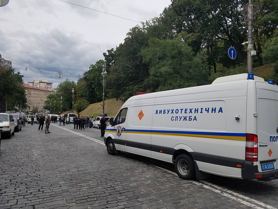 После инцидента правоохранители перекрыли часть улицы Грушевского. На место прибыла взрывотехническая служба, "скорые" и работники СБУ.