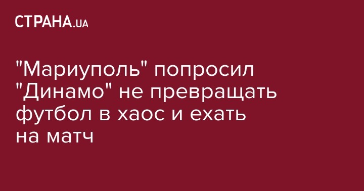 "Мы надеемся, что здравый смысл восторжествует и матчи "Мариуполь" - "Динамо" все-таки состоятся. Коллеги из "Динамо" (Киев), "мяч" на Вашей стороне, не лишайте болельщиков украинского Мариуполя футбольного праздника и не превращайте украинский футбол в хаос", - говорится в письме.