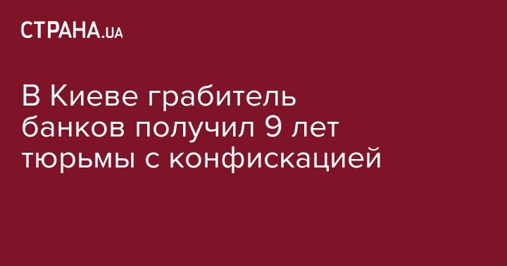 Приговором Оболонского райсуда Киева злоумышленник за совершение уголовного преступления, предусмотренного ч. 2 ст. 187 (разбой) Уголовного кодекса Украины, приговорен к 9 годам лишения свободы с конфискацией имущества.