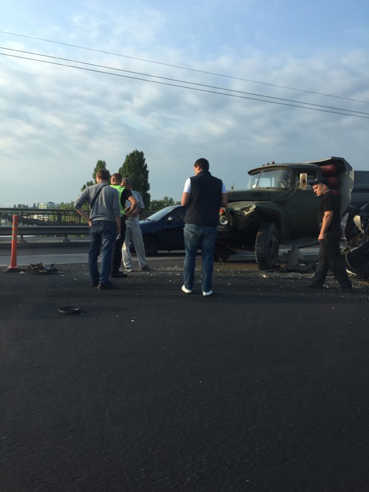 В страшном ДТП на мосту Патона самосвал "смял" "Москвич" в лепешку