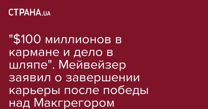 "$100 миллионов в кармане и дело в шляпе". Мейвейзер заявил о завершении карьеры после победы над Макгрегором