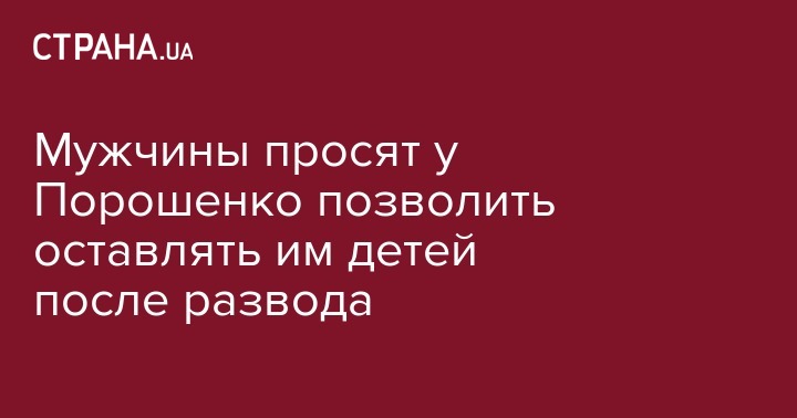 Президента призывают уравнять мужчин и женщин в правах на ребенка после развода. Петиция с соответствующим требованием появилась на сайте интернет-представительства Президента Украины.