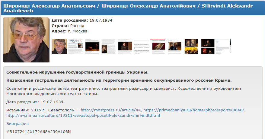 Сообщается, что Ширвиндт был в Крыму с 2015 года.