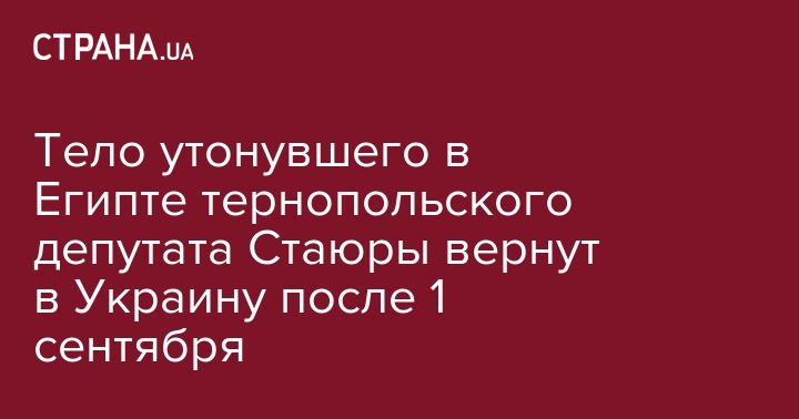 Тело тернопольского депутата Владимира Стаюры, который накануне утонул в Египте во время занятий по дайвингу, смогут доставить в Украину только после первого сентября. Об этом пишет местный сайт 0352.ua.