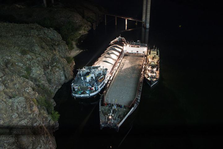 В "Укртрансбезопасности" инцидент не комментируют, зато очевидцы говорят, что баржа уже наклонилась и часть груза ушла под воду.