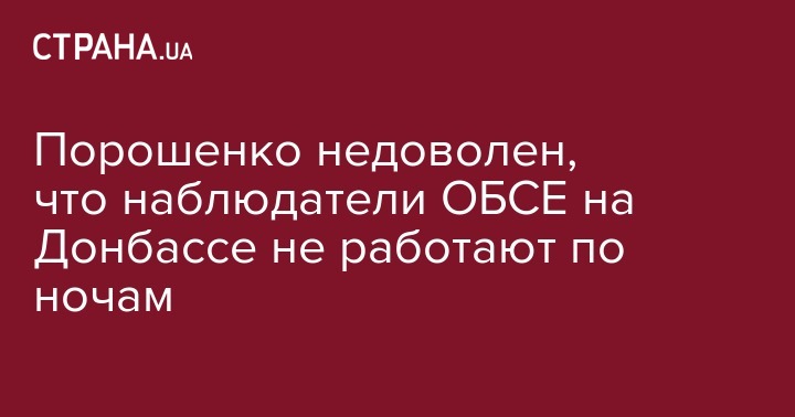 Порошенко недоволен, что наблюдатели ОБСЕ на Донбассе не работают по ночам
