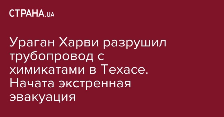 Из-за урагана Харви в Техасе произошла разгерметизация трубопровода и последующая утечка химических веществ. Об этом сообщает Reuters.