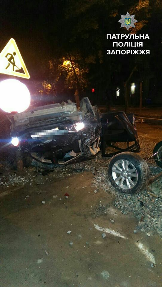 Сегодня ночью, 29 августа, в Запорожье на Маяковского автомобиль Chevrolet Cruze в ДТП разнесло вдребезги, сообщает пресс-служба Патрульной полиции.