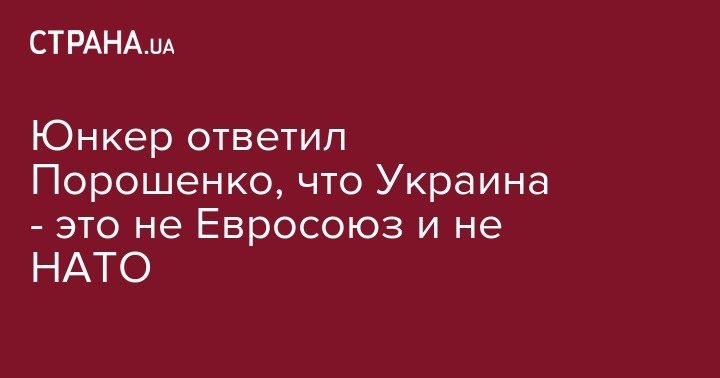 Глава Еврокомиссии Жан-Клод Юнкер заявил, что Украина не относится ни к Евросоюзу, ни к НАТО, о чем на днях сказал президент Петр Порошенко. Его слова приводят "РИА Новости".