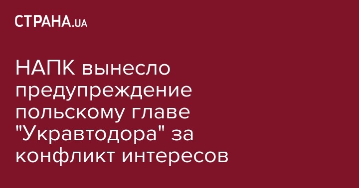 НАПК вынесло предупреждение польскому главе "Укравтодора" за конфликт интересов