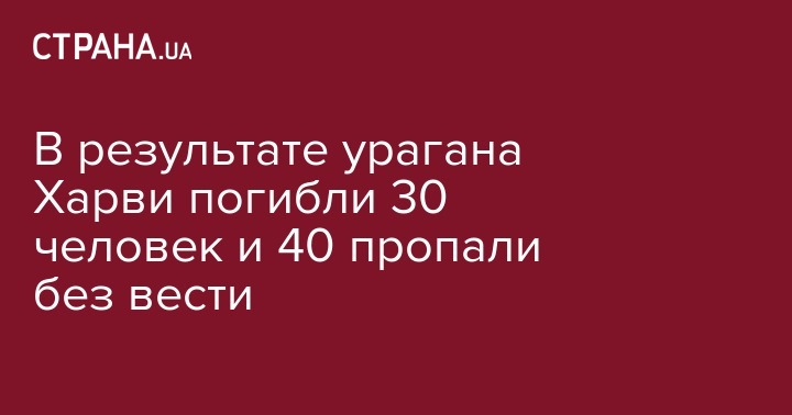 Число жертв тропического шторма Харви, который обрушился на Техас, достигло 30 человек. Об этом пишет "Коммерсант" со ссылкой на The New York Times.