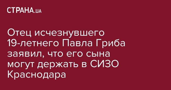 Отец исчезнувшего 19-летнего Павла Гриба заявил, что его сына могут держать в СИЗО Краснодара