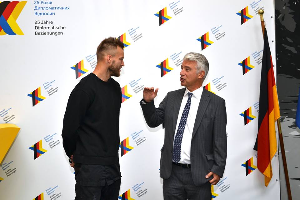 Посол Эрнст Райхель поздравил Андрея Ярмоленко, фото: facebook.com/deutschebotschaftkiew