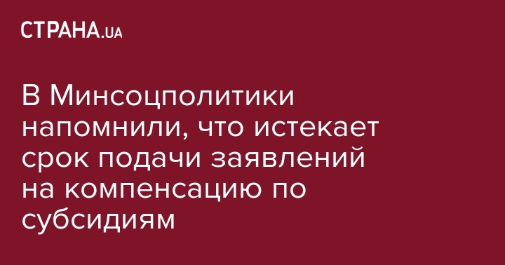 В Минсоцполитики напомнили, что истекает срок подачи заявлений на компенсацию по субсидиям