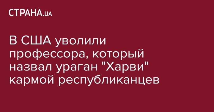 Из университета Тампы во Флориде уволили профессора социологии Кеннета Стори, который написал в своем микроблоге Twitter, что ураган "Харви" это карма для Техаса за поддержку республиканцев. Об этом сообщает The Washington Post.
