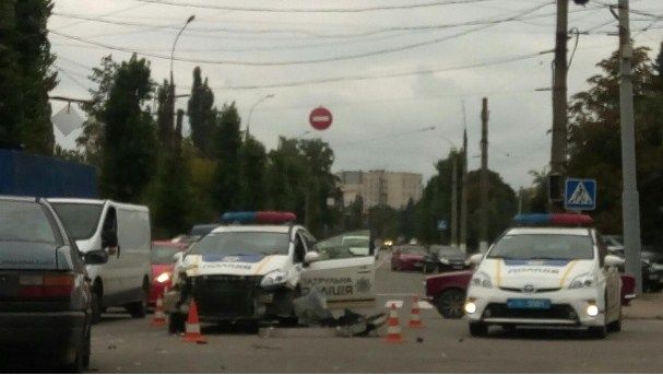 В Харькове столкнулись полицейский автомобиль с сиреной и маршрутный автобус