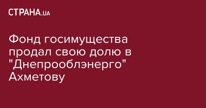 Фонд госимущества продал свою долю в "Днепрооблэнерго" Ахметову