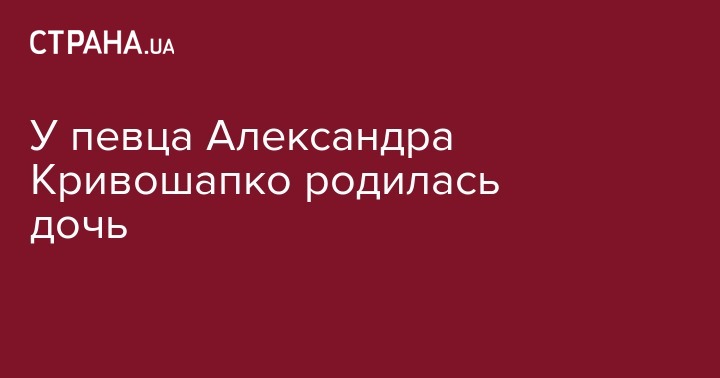 У украинского певца, финалиста вокального шоу "Х-Фактор" Александра Кривошапко родилась дочь. Об этом артист написал на своей странице в социальной сети Instagram и опубликовал трогательное фото с новорожденной.