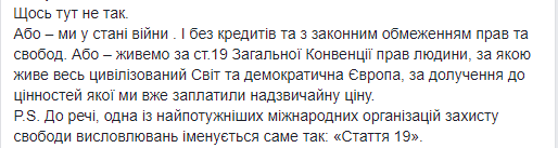 Он отмечает, что свобода слова защищается внутренними украинскими законами и международным правом.