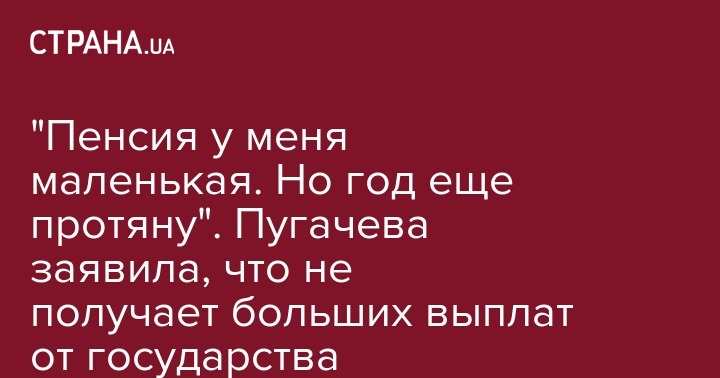 "Пенсия у меня маленькая. Но год еще протяну". Пугачева заявила, что не получает больших выплат от государства