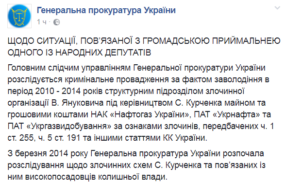 Об этом в Facebook сообщает пресс-служба ГПУ.