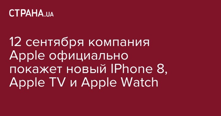 В корпорации Apple выбрали вторник, 12 сентября в качестве даты презентации новых электронных устройств. Презентация iPhone 8 с онлайн-трансляцией пройдет на "Стране".