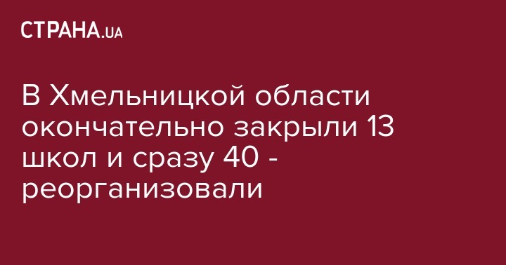 В Хмельницкой области закрыли 13 школ. Как сообщил УНИАНу директор департамента образования и науки Хмельницкой облгосадминистрации Олег Фасоля, в основном закрыли малокомплектные школы, в которых училось менее 100 учеников.
