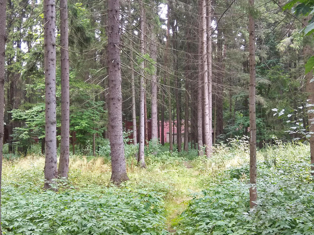 В 150 метрах от госдачи находится построенный несколько лет назад комплекс "Скит", где живет патриарх Кирилл. Как обнаружил корреспондент "Медузы", от запасной калитки госдачи к входу в резиденцию патриарха ведет хорошо протоптанная тропинка.