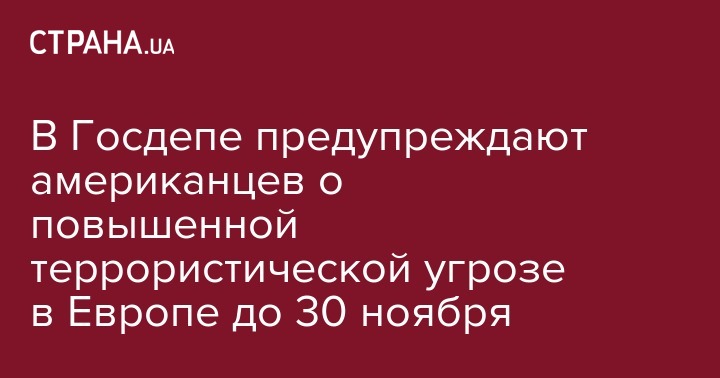 В Госдепе предупреждают американцев о повышенной террористической угрозе в Европе до 30 ноября