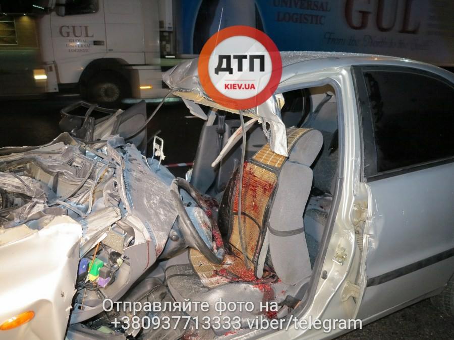 В Киеве на Окружной произошло смертельное ДТП. Daewoo влетел в грузовик Tata, который ехал с включенной аварийкой. Об этом сообщает dtp.kiev.ua на странице в Facebook.