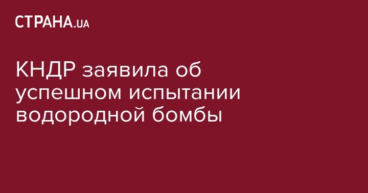 КНДР заявила об успешном очередном испытании водородной бомбы. Северокорейское телевидение сообщило, что испытание прошло "полностью успешно", сообщает "Интерфакс" со ссылкой на агентство Ренхап.