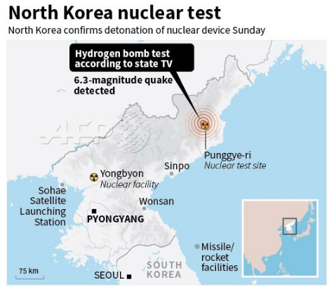 Несколькими часами ранее официальные северокорейские СМИ передали, что лидер КНДР Ким Чен Ын осмотрел разработанный северокорейскими учеными водородный боезаряд, который достаточно компактен, чтобы его можно было установить на межконтинентальную баллистическую ракету.