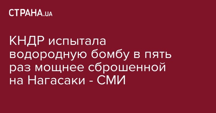 Как сообщала "Страна", КНДР заявила об успешном испытании водородной бомбы. По данным Пхеньяна, испытанное устройство может быть установлено в качестве боеголовки на межконтинентальную баллистическую ракету.