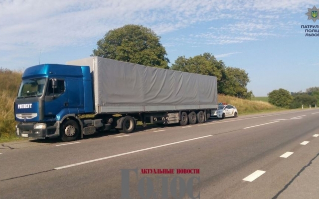 Под Львовом пьяный водитель фуры уснул в кабине, пока ему составляли протокол