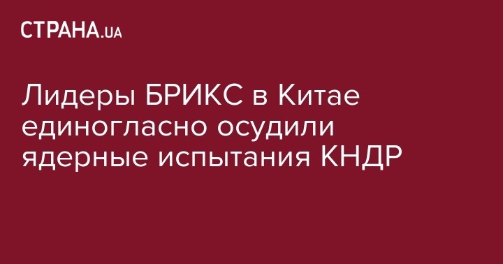 В ходе саммита стран БРИКС лидеры государств-участников выступили с решительным осуждением относительно ядерного испытания, проведенного руководством КНДР, передает РИА Новости.