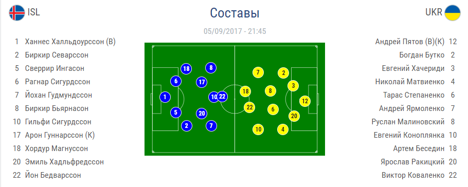 20.40 Сборная Украины сыграет в своей традиционной желтой форме. Исландцы выйдут на поле в красном.