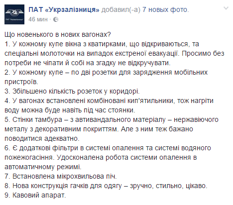 "В целом уже в этом году "Укрзализниця" начнет разработку проекта нового вагона будет соответствовать международным современным стандартам и требованиям и будет отличаться от того подвижного состава, к которому мы привыкли. При благоприятных обстоятельствах пассажир увидит новый вагон через 1,5-2 года", - заявил член правления ПАО "Укрзализниця" Сергей Михальчук