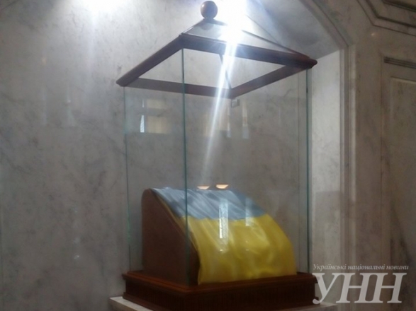 В кулуарах Верховной Рады заменили ковры и в специальном стеклянном боксе разместили государственный флаг Украины, который был внесен в парламент сторонниками независимости Украины во главе с Вячеславом Чорновилом. Об этом сообщает УНН.