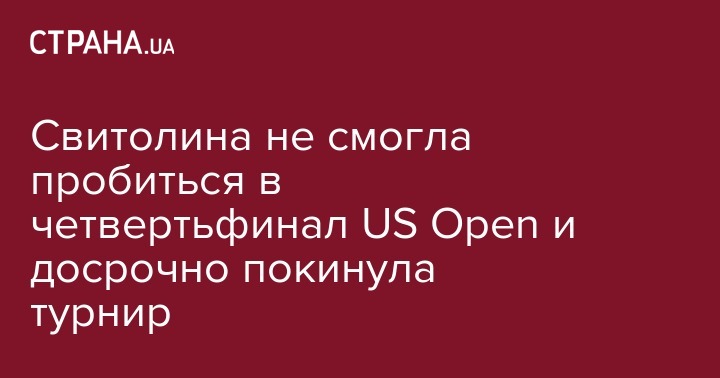 Первая ракетка Украины и четвертая ракетка мира харьковчанка Элина Свитолина досрочно покинула последний в теннисном сезоне турнире серии Большого Шлема - Открытом чемпионате США US-Open в Нью-Йорке (общий призовой фонд $50,4 миллиона). Об этом сообщает официальный сайт WTA.
