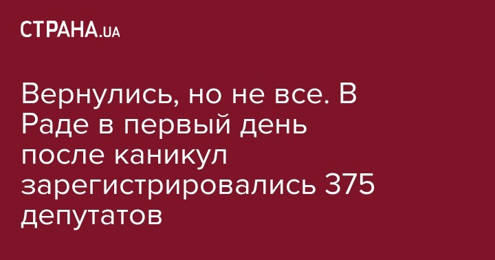 Вернулись, но не все. В Раде в первый день после каникул зарегистрировались 375 депутатов