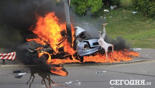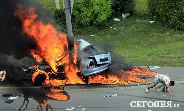 Кадры, напоминающие съемки каскадера, - последствия ДТП в Киеве Фото: kiev.segodnya.ua