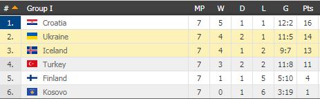 Как сообщалось, команда Андрея Шевченко благодаря уверенной победе над турецкой сборной вышла на вторую строчку в группе I, всего на два очка уступая хорватам.