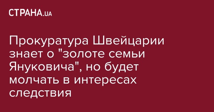 Генеральной прокуратуре Швейцарии известно о деле "золота семьи Януковича", но там не могут раскрывать подробности в интересах следствия. Об этом со ссылкой на данные швейцарской прокуратуры сообщает немецкая радиостанция DW.