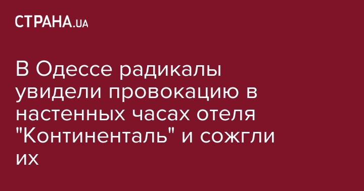 В Одессе радикалы увидели провокацию в настенных часах отеля "Континенталь" и сожгли их