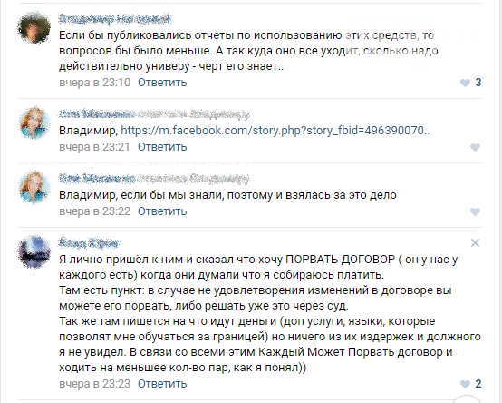 "Если бы публиковались отчеты по использованию этих средств, то вопросов бы было меньше. А так куда оно все уходит, сколько надо действительно универу - черт его знает", - пишут студенты.