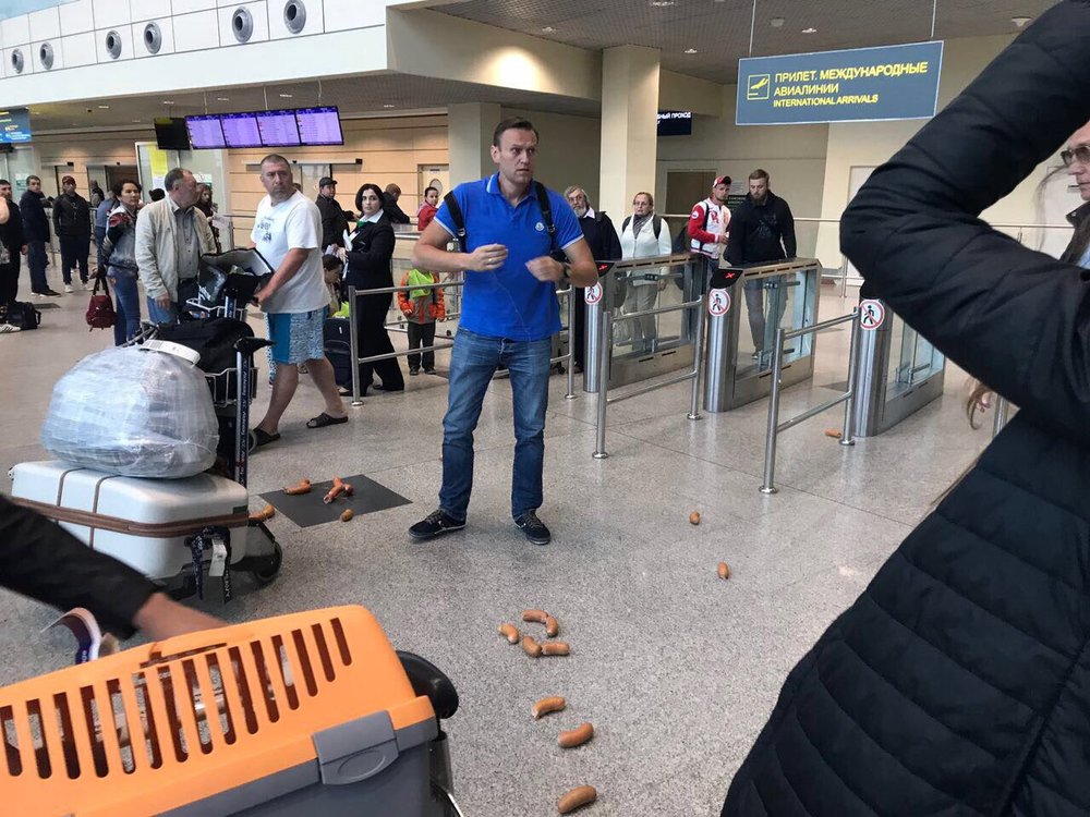 Навальный рассказал как его в "Домодедово" встретили "черти" со связкой сарделек