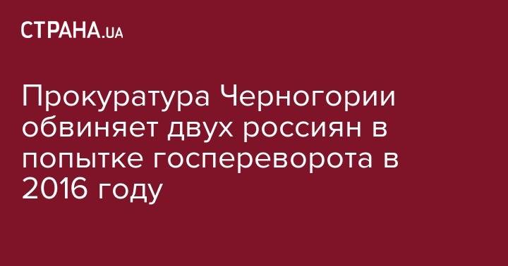 Двое российских граждан названы прокуратурой Черногории главными организаторами попытки государственного переворота в октябре 2016 года, передает "Радио Свобода".