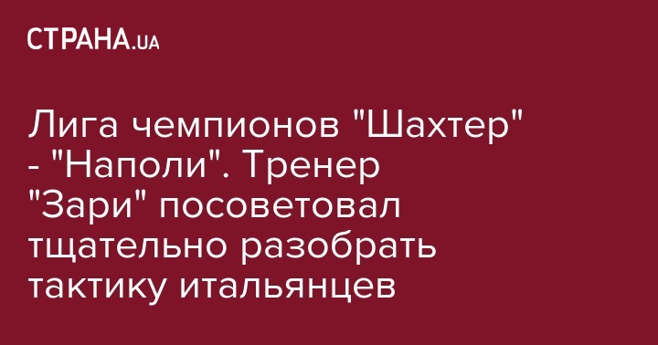 Лига чемпионов "Шахтер" - "Наполи". Тренер "Зари" посоветовал тщательно разобрать тактику итальянцев